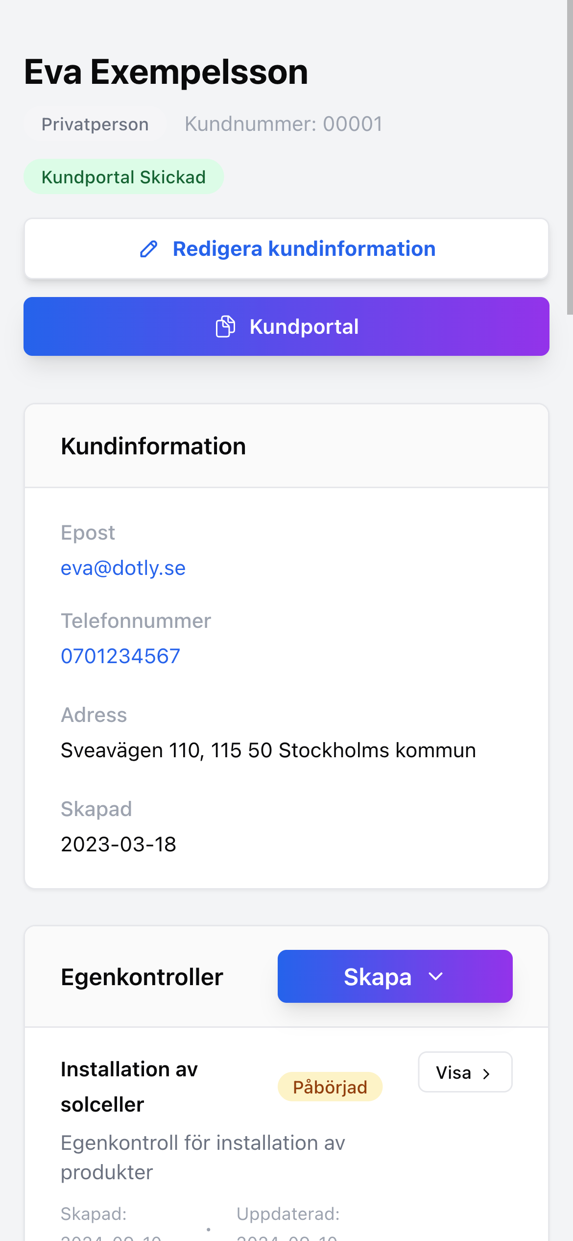 Håll koll på alla era kunder med kontaktuppgifter, installationer och dokumentation samlat på ett ställe.
